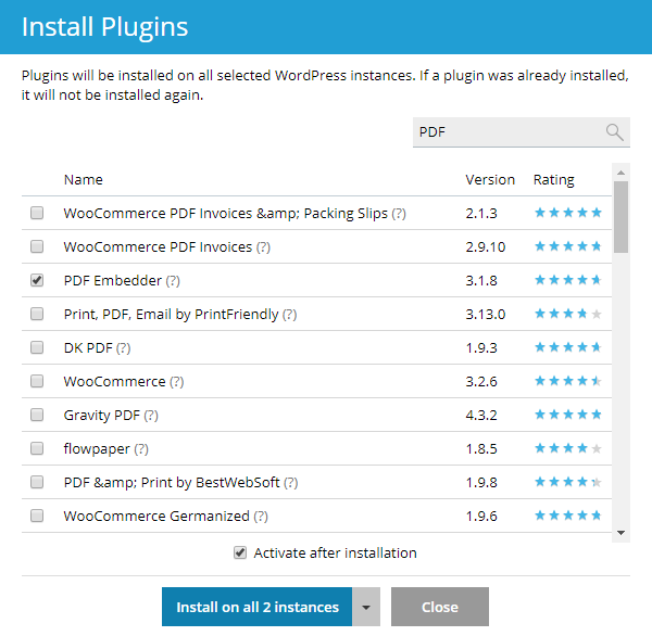 Über WordPress Toolkit können Sie Plug-ins in einer oder mehreren WordPress-Instanzen installieren. Sie haben folgende Möglichkeiten: