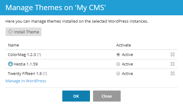 - Verwalten Sie WordPress-Plug-ins und Themes. Weitere Informationen finden Sie unter Verwalten von Plug-ins und Verwalten von Themes.