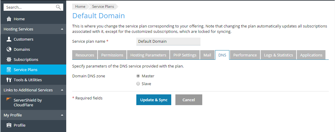 Ces paramètres (sous Packs de services > sélectionnez un pack > onglet DNS) définissent comment le service DNS exécuté sur le serveur géré par Plesk servira les zones DNS pour les sites Web hébergés sur le pack.