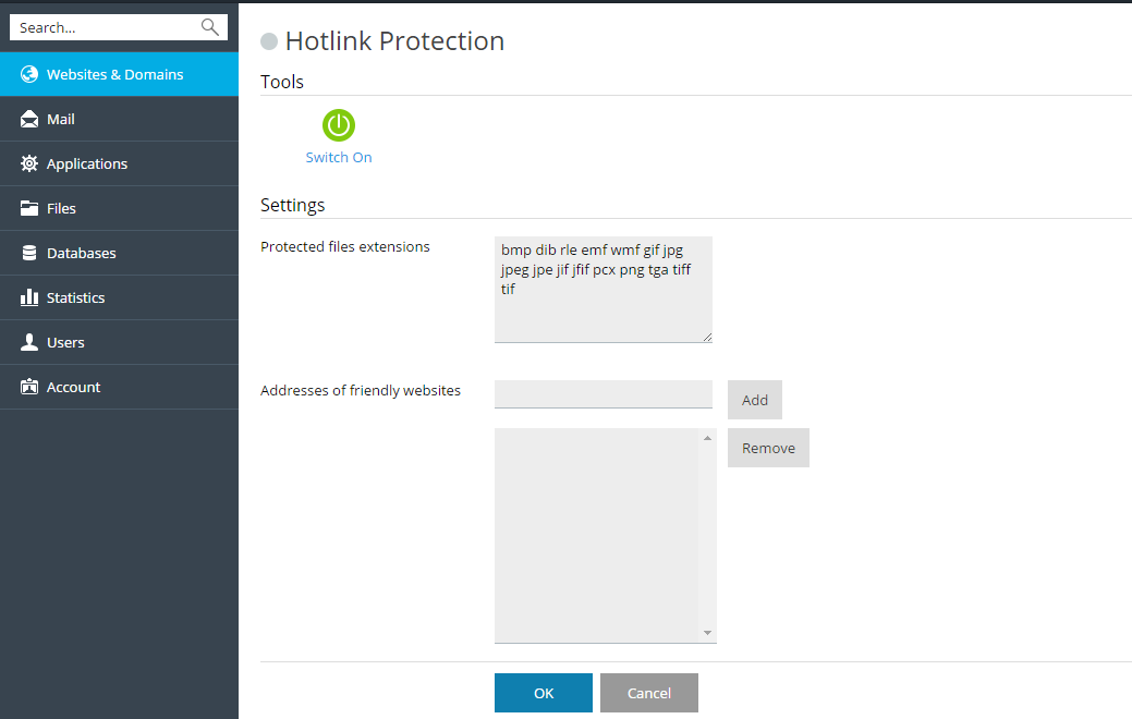 - Cliquez sur Activer pour activer la protection contre le Hotlinking.